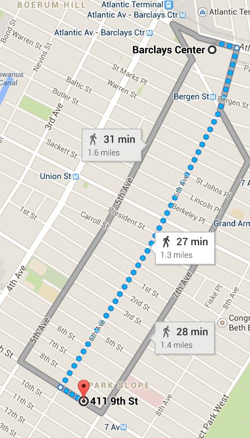 This is a good time to show you a map of the distance between the Barclay’s Center and the approximate location of this “Get out of the neighborhood” encounter. Keep in mind that most New Yorkers walk or take public transportation everywhere: