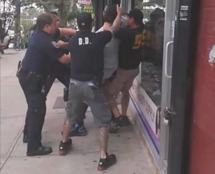 I became fixated with these images of Garner’s introduction to death led by Officer Palateo’s Crooked Arm of the Law, because they look like something we’ve seen before.