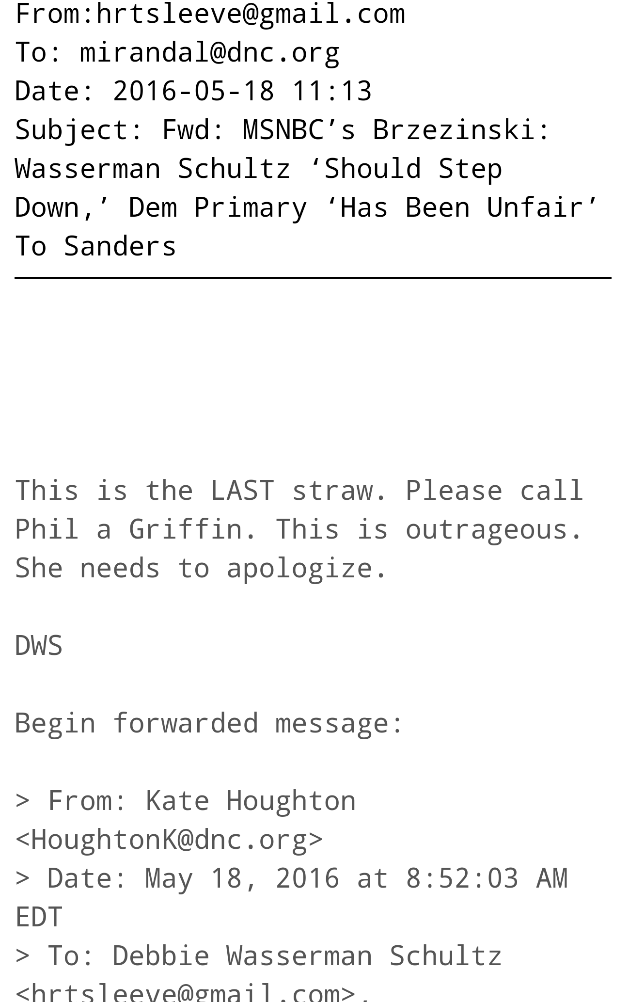 Here’s a Miranda email from May where he advises against using an MSNBC video segment because it has a heavy Bernie piece in it: