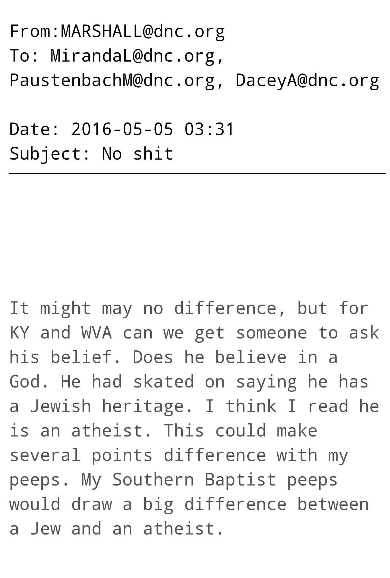 The DNC was apparently brainstorming ways to sabotage Sanders’ campaign when a suggestion about his religious beliefs came up: